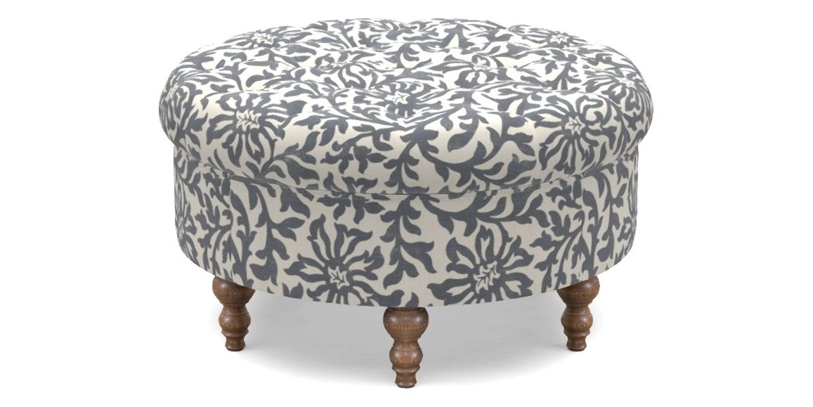 Burford Bespoke Round Footstools in V&A Brompton Collection - Floral Scroll : Midnight Blue