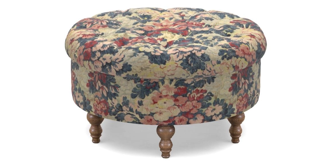 Burford Bespoke Round Footstools in Floral Linen : Sylvan Ink Magenta