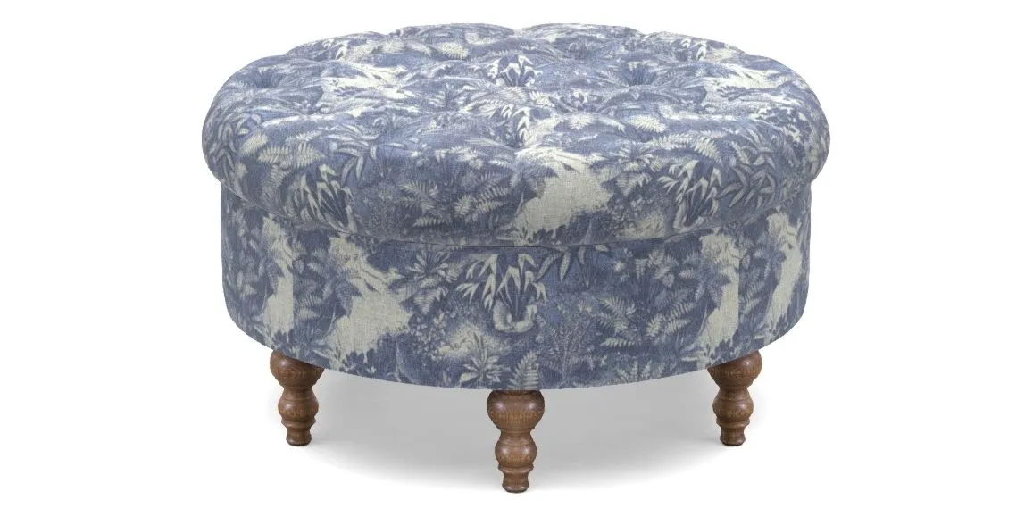 Burford Bespoke Round Footstools in RHS Botanicals - Ferns Toile : Indigo