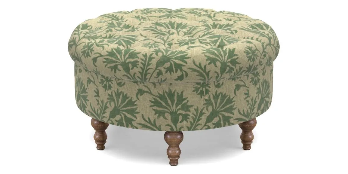 Burford Bespoke Round Footstools in RHS Collection - Gertrude Jekyll Meadow Flower : Green