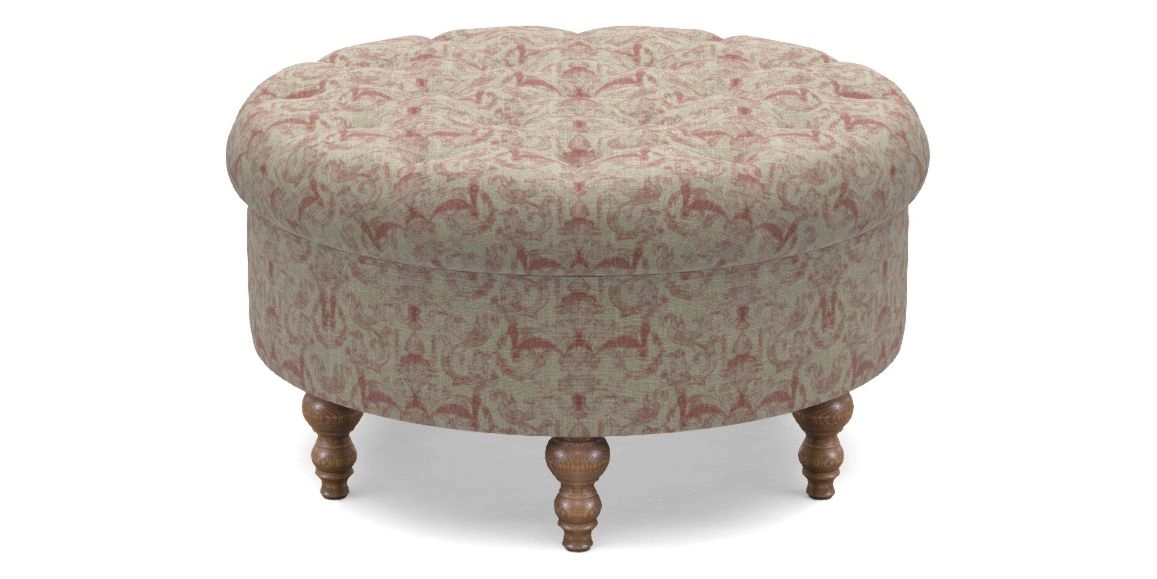 • Burford Bespoke Round Footstools in RHS Collection - Gertrude Jekyll Ornamental : Red