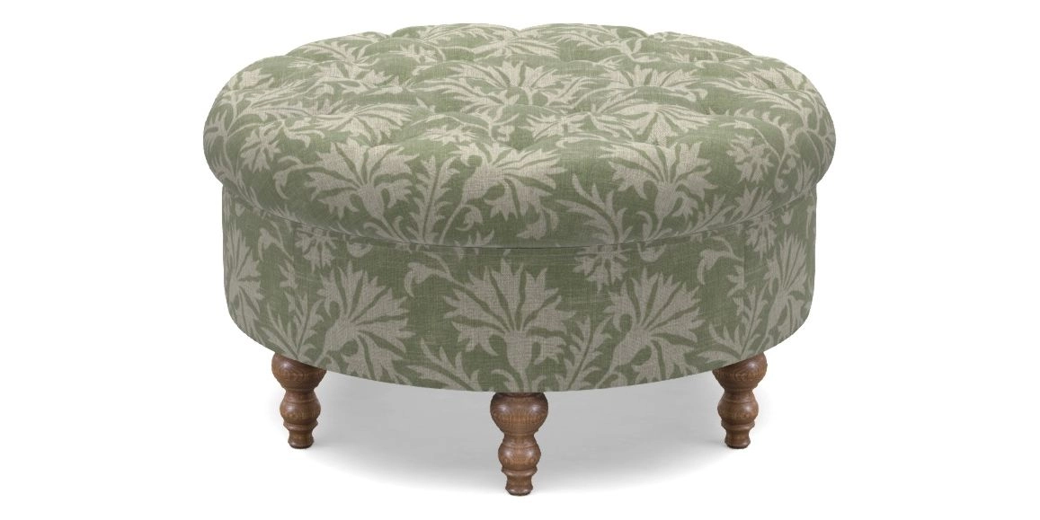Burford Bespoke Round Footstools in RHS Collection - Gertrude Jekyll Meadow Flower Reversed : Olive