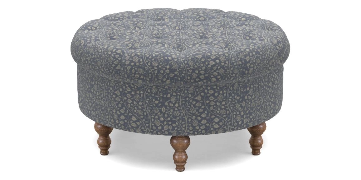 • Burford Bespoke Round Footstools in RHS Collection - Gertrude Jekyll Small Trailing Vine : Blue