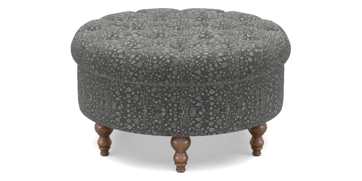 Burford Bespoke Round Footstools in RHS Collection - Gertrude Jekyll Small Trailing Vine : Navy