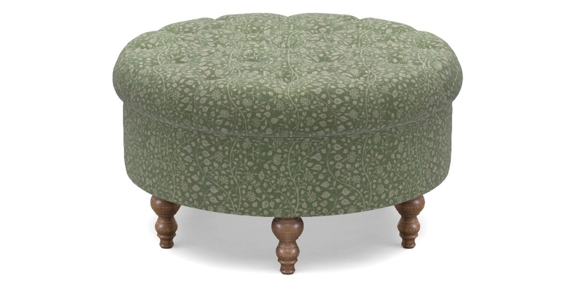 Burford Bespoke Round Footstools in RHS Collection - Gertrude Jekyll Small Trailing Vine : Olive