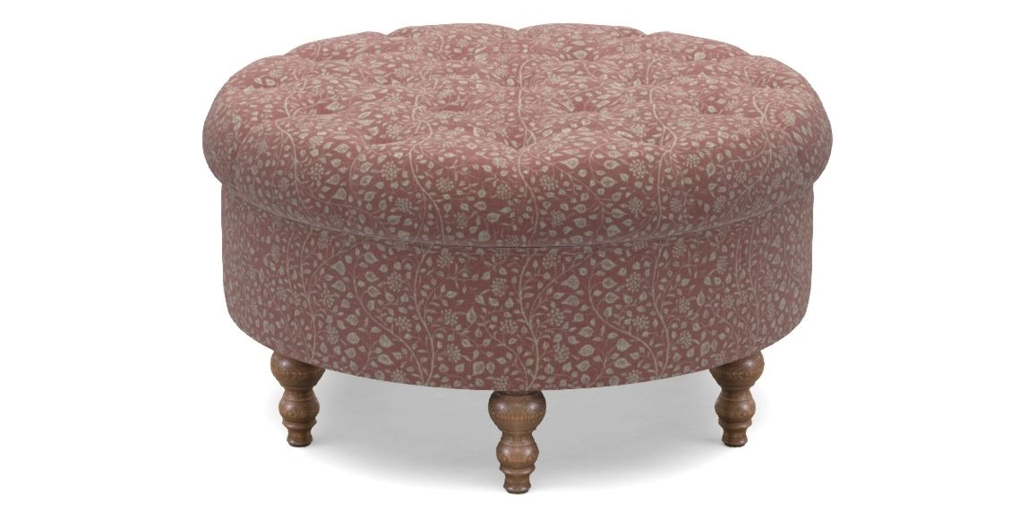 Burford Bespoke Round Footstools in RHS Collection - Gertrude Jekyll Small Trailing Vine : Red