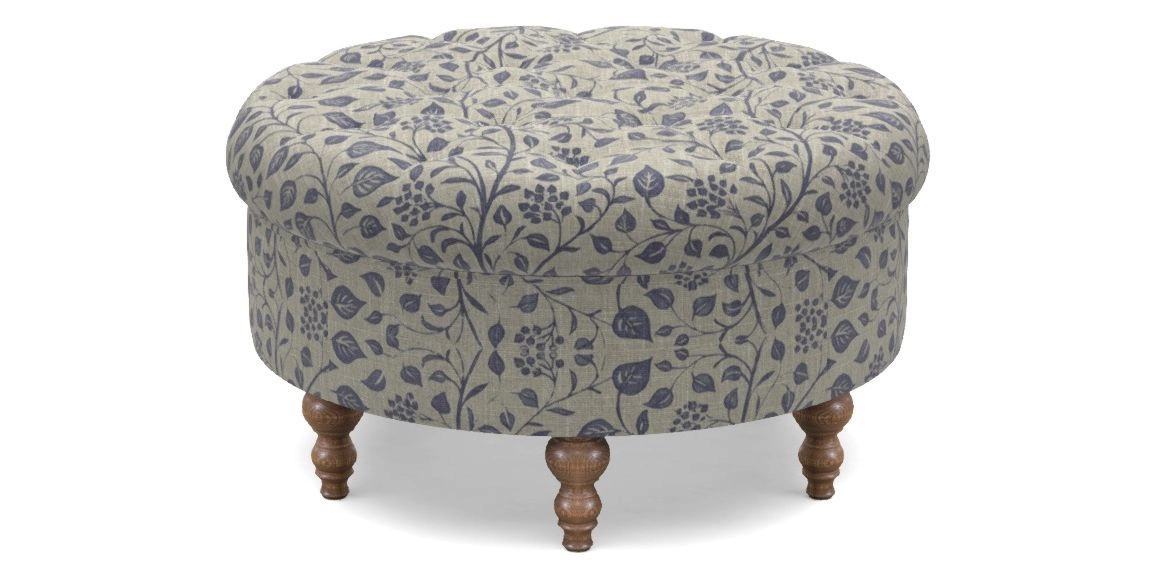 Burford Bespoke Round Footstools in RHS Collection - Gertrude Jekyll Trailing Vine : Blue
