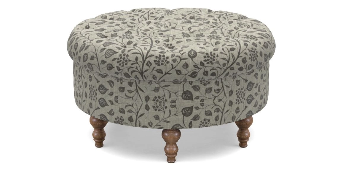 Burford Bespoke Round Footstools in RHS Collection - Gertrude Jekyll Trailing Vine : Brown