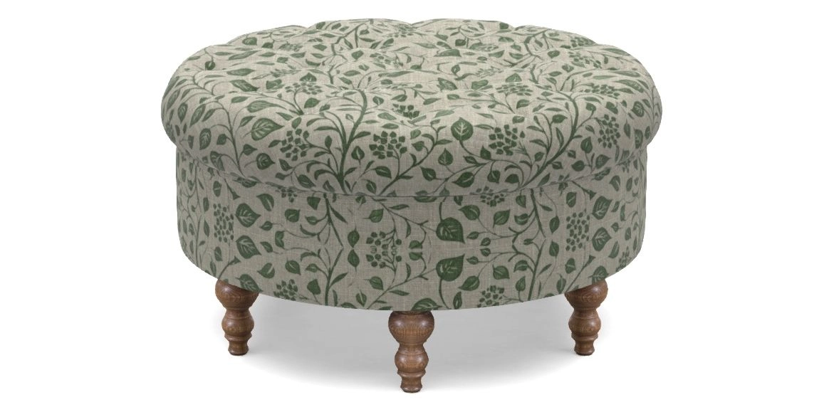 Burford Bespoke Round Footstools in RHS Collection - Gertrude Jekyll Trailing Vine : Green