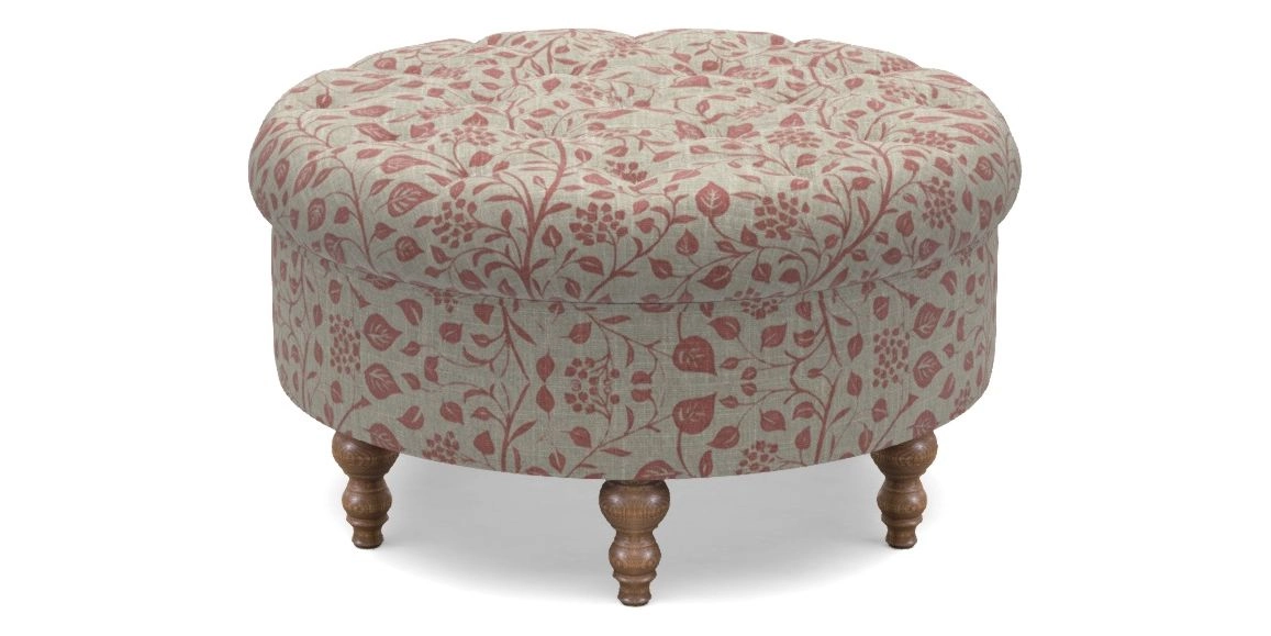 Burford Bespoke Round Footstools in RHS Collection - Gertrude Jekyll Trailing Vine : Red