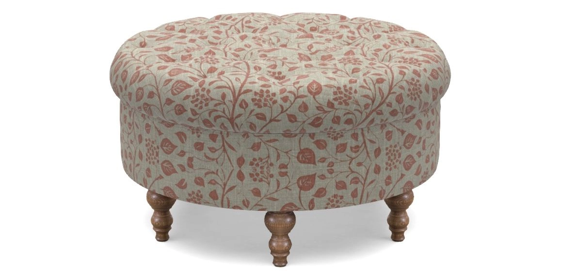 Burford Bespoke Round Footstools in RHS Collection - Gertrude Jekyll Trailing Vine : Terracotta