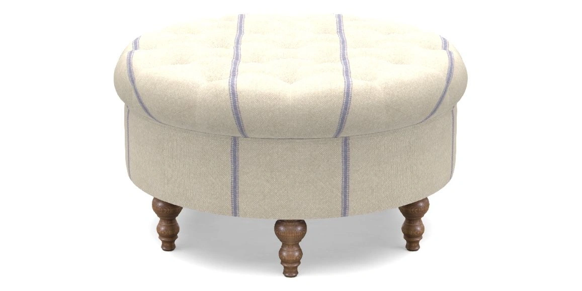 Burford Bespoke Round Footstools in Grain Sack Stripe Linen : Blue