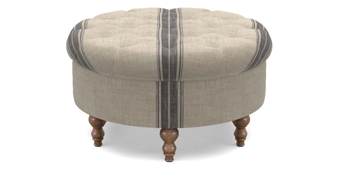 • Burford Bespoke Round Footstools in Woven Linen Stripe - Ganton : Ganton Woven Linen Stripe Blue