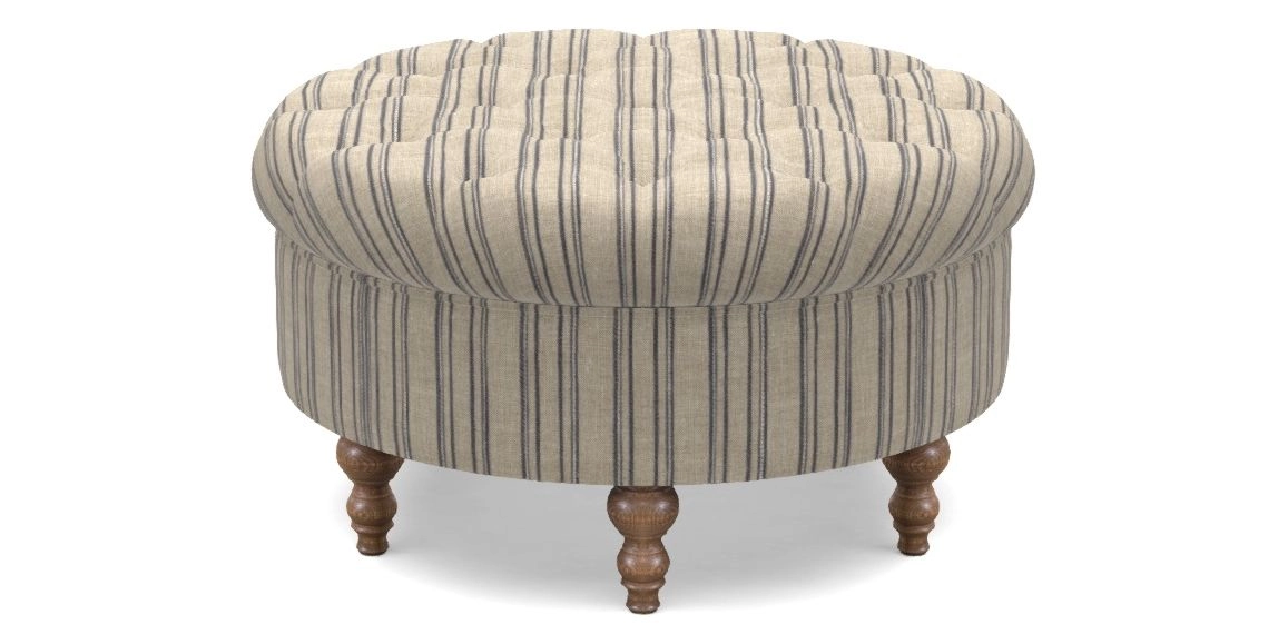 Burford Bespoke Round Footstools in Woven Linen Stripe - Hovingham : Hovingham Woven Linen Stripe Blue