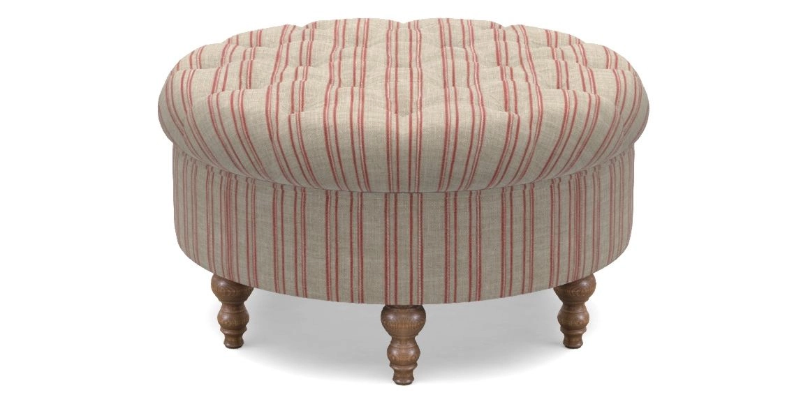 • Burford Bespoke Round Footstools in Woven Linen Stripe - Hovingham : Hovingham Woven Linen Stripe Red