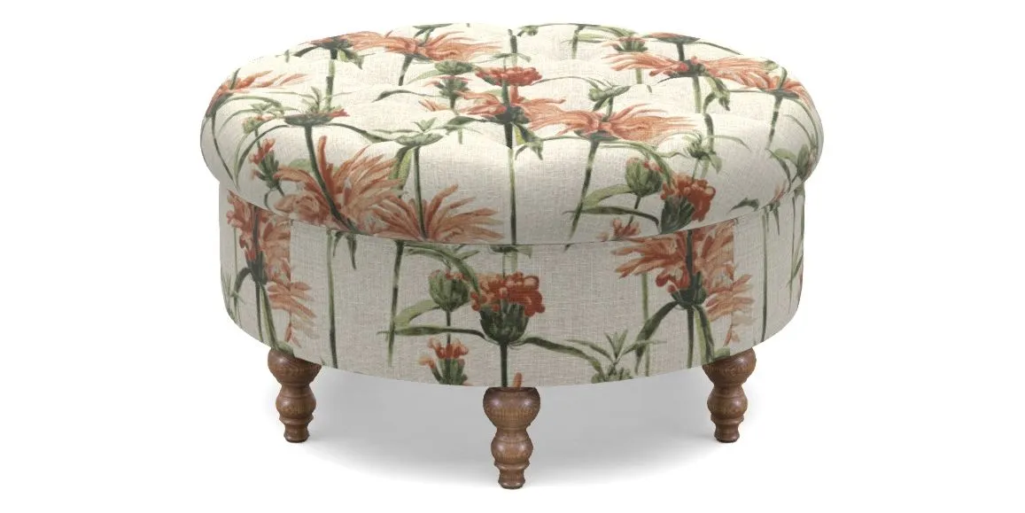 Burford Bespoke Round Footstools in RHS Botanicals - Henry Moon Lions Tail : Terracotta