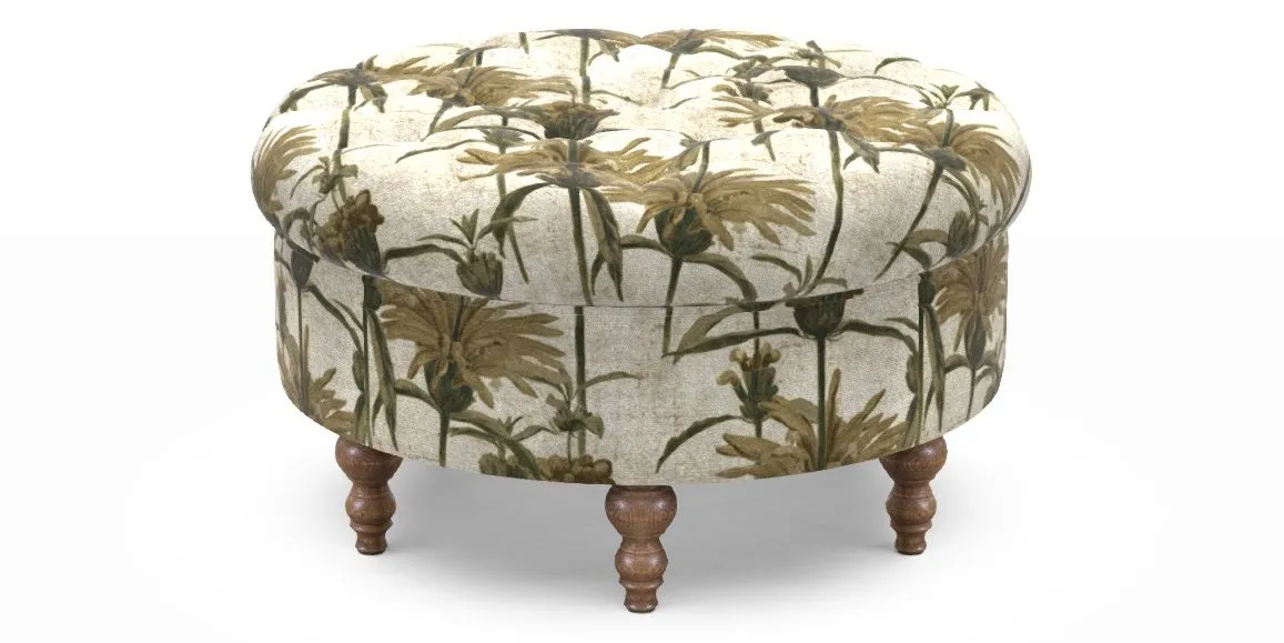 • Burford Bespoke Round Footstools in RHS Botanicals on Velvet - Henry Moon Lion's Tail : Sandstone