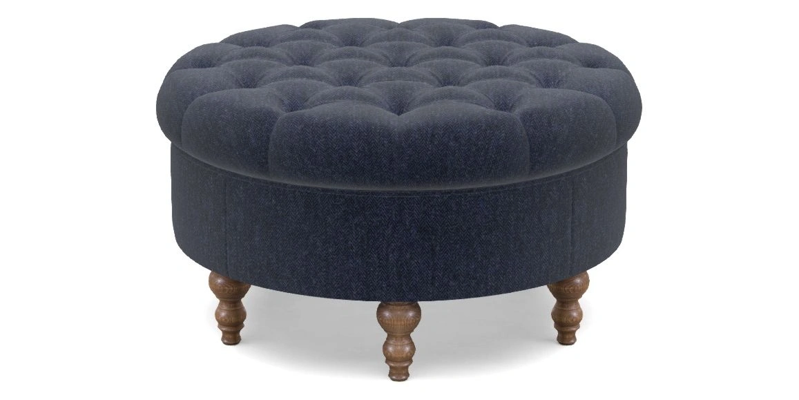Burford Bespoke Round Footstools in Harris Tweed House : Midnight Blue