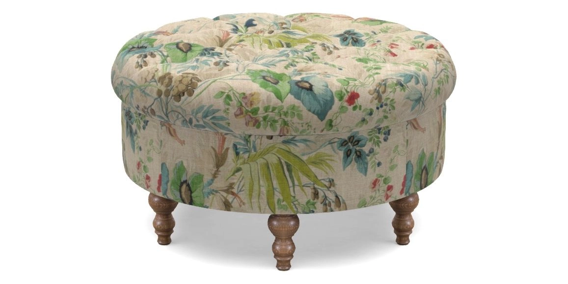 Burford Bespoke Round Footstools in Jungle Jaded Linen : Natural