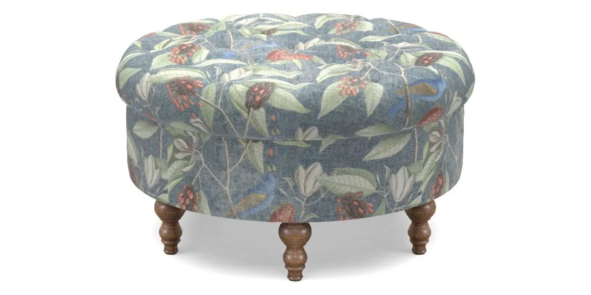 Burford Bespoke Round Footstools in RHS Botanicals - Mark Catesby Grosbeak : Teal