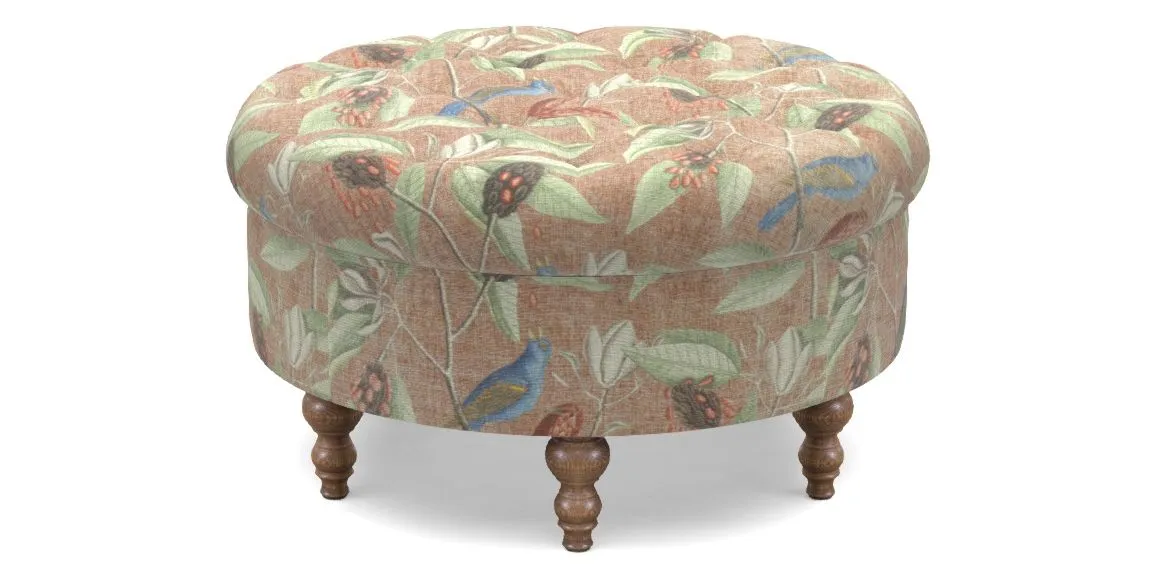 • Burford Bespoke Round Footstools in RHS Botanicals - Mark Catesby Grosbeak : Terracotta