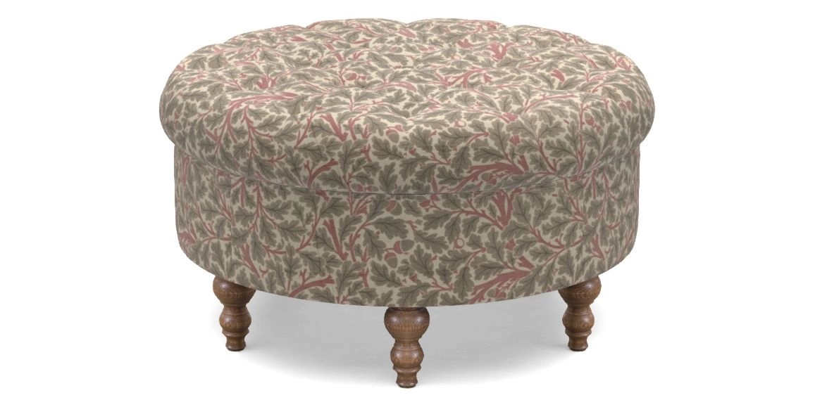 • Burford Bespoke Round Footstools in V&A Drawn From Nature - Oak Tree : Red