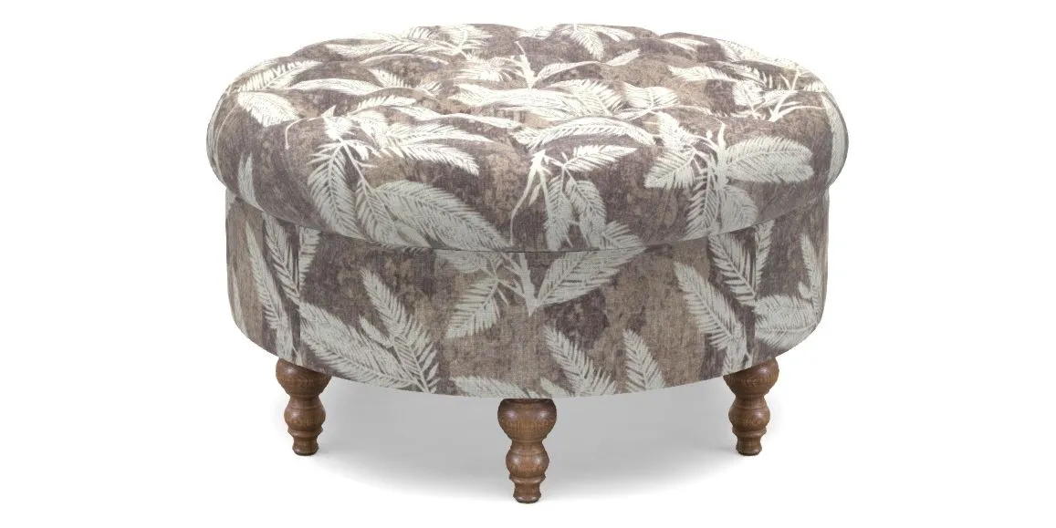 • Burford Bespoke Round Footstools in RHS Botanicals - Palm Leaf : Bark