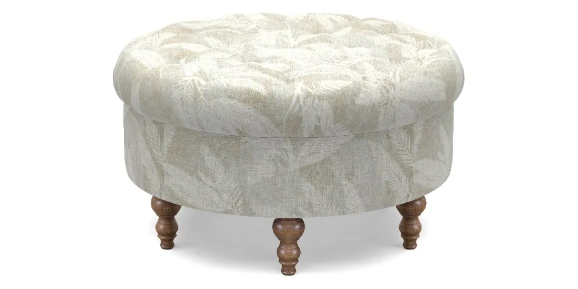 • Burford Bespoke Round Footstools in RHS Botanicals - Palm Leaf : Oatmeal