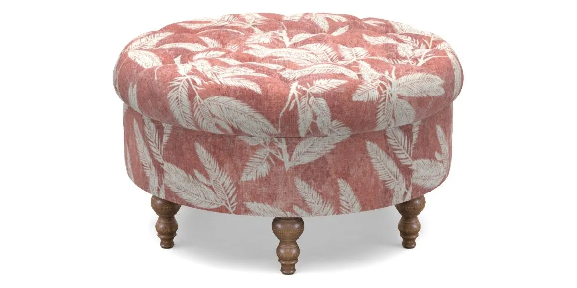 Burford Bespoke Round Footstools in RHS Botanicals - Palm Leaf : Terracotta