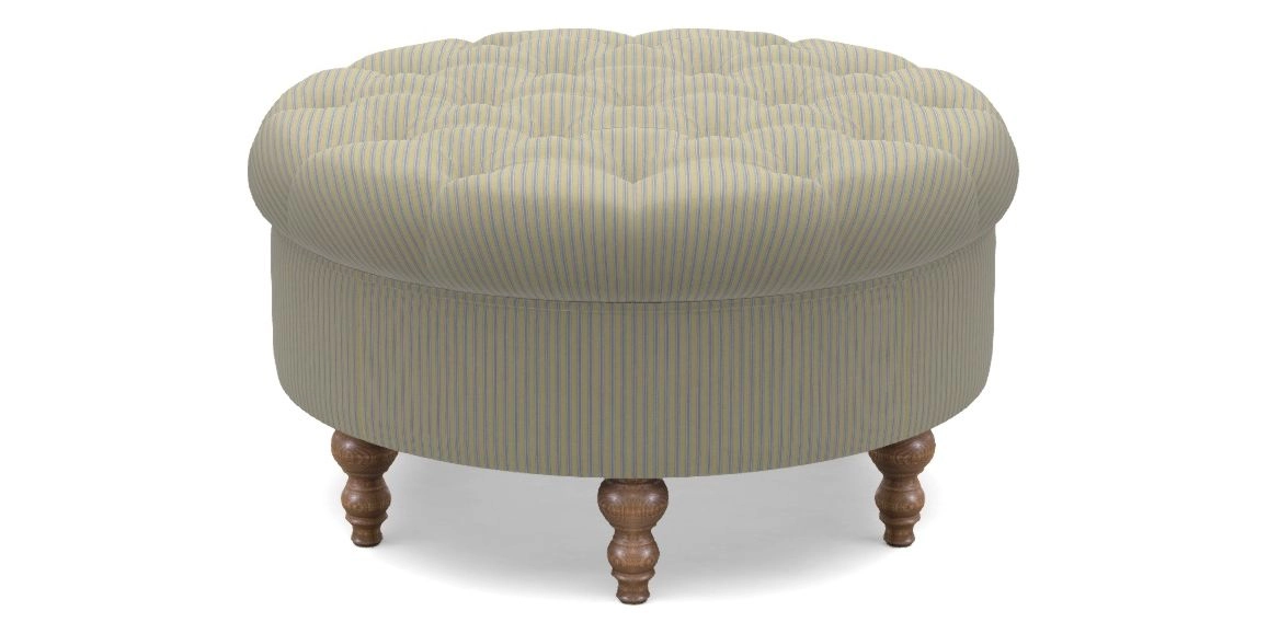• Burford Bespoke Round Footstools in Rustic Ticking : Antique Iris