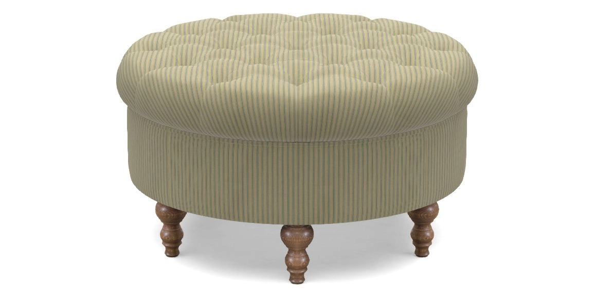 • Burford Bespoke Round Footstools in Rustic Ticking : Antique Khaki