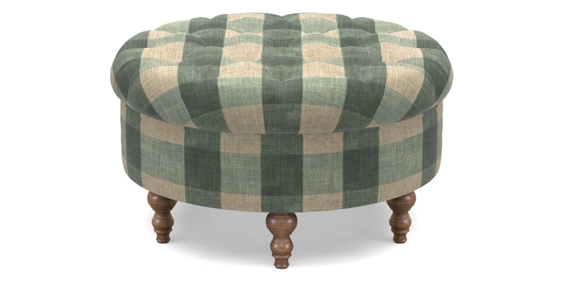 Burford Bespoke Round Footstools in Sussex Gingham Large : Forest