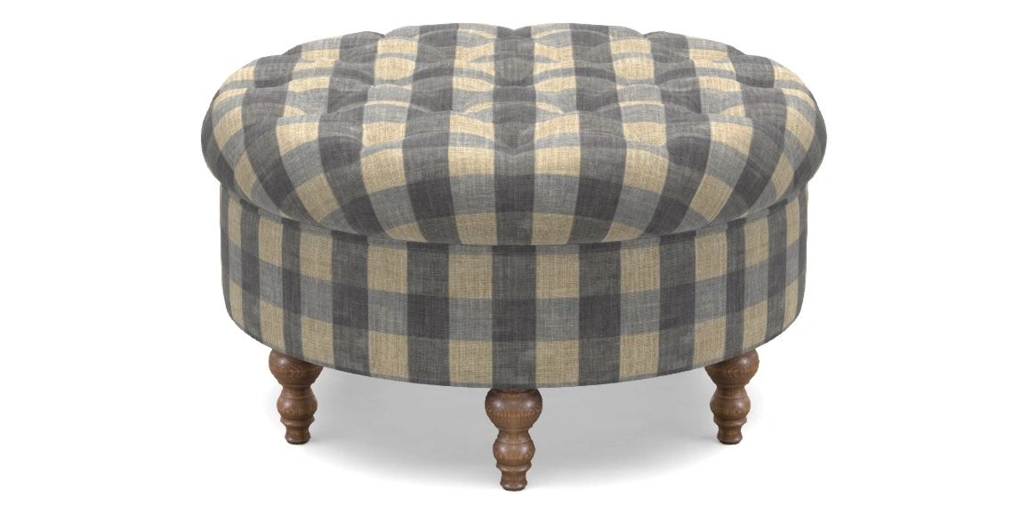 Burford Bespoke Round Footstools in Sussex Gingham Small : Pitch