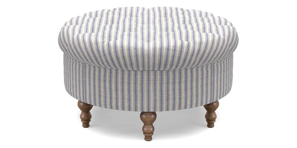 Burford Bespoke Round Footstools in Stockport Stripe : Denim
