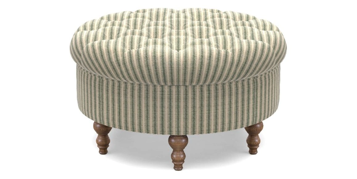 • Burford Bespoke Round Footstools in Stockport Velvet Stripe : Dill