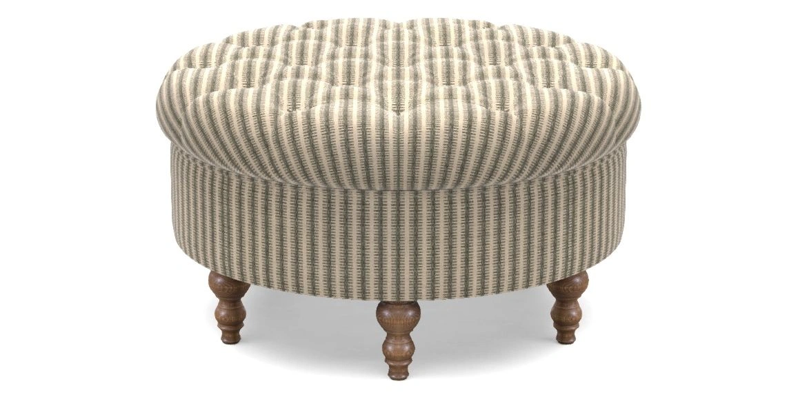 • Burford Bespoke Round Footstools in Stockport Velvet Stripe : Forest