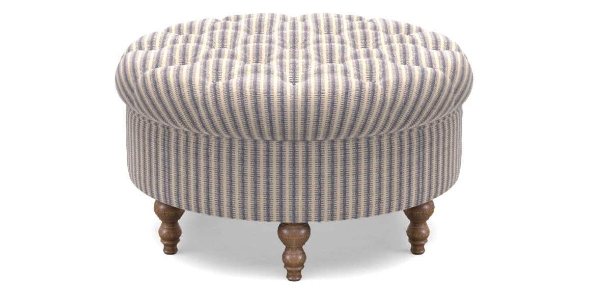 • Burford Bespoke Round Footstools in Stockport Velvet Stripe : Sky
