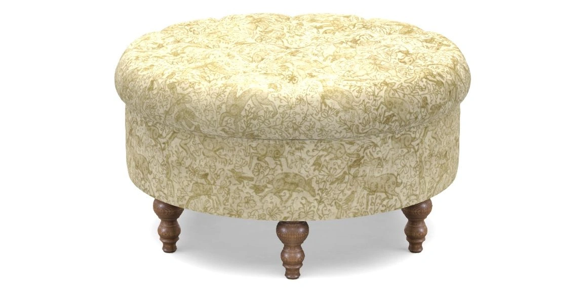 Burford Bespoke Round Footstools in V&A Threads of India Opulent Velvets - Forest Creatures : V&A Threads of India Opulent Velvets - Forest Creatures Gold
