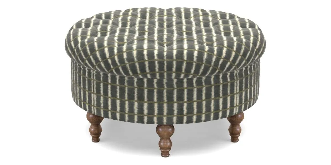Burford Bespoke Round Footstools in V&A Threads of India Opulent Velvets - Ikat Mirage : V&A Threads of India Opulent Velvets - Ikat Mirage Pitch