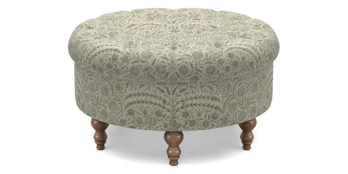 Burford Bespoke Round Footstools in V&A Threads of India - Mughal Arbour : Sage