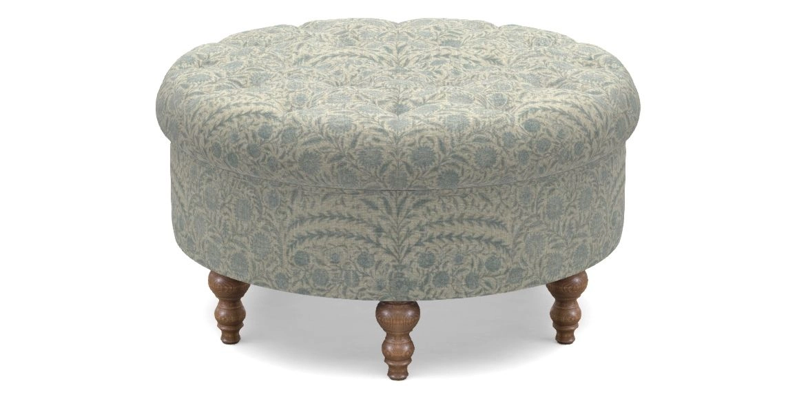 • Burford Bespoke Round Footstools in V&A Threads of India - Mughal Arbour : Sapphire