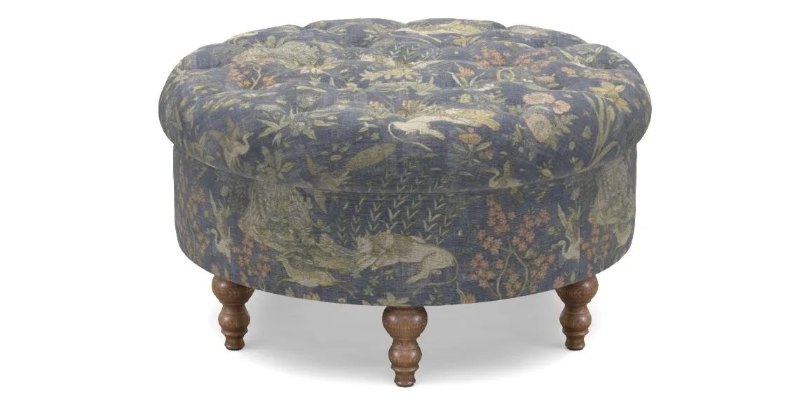 Burford Bespoke Round Footstools in V&A Threads of India - Mughal Garden Safari : Ink