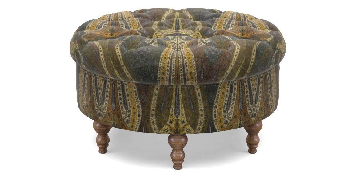 • Burford Bespoke Round Footstools in V&A Threads of India Opulent Velvets - Paisley Splendour : V&A Threads of India Opulent Velvets - Paisley Splendour Olive