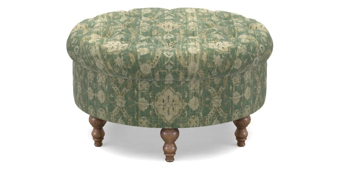 Burford Bespoke Round Footstools in V&A Threads of India - Regal Arabesque : Juniper