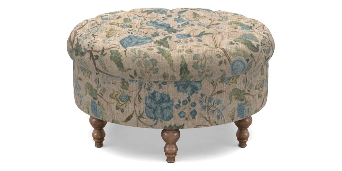 Burford Bespoke Round Footstools in V&A Threads of India on Linen - Tree of Life : V&A Threads of India on Linen - Tree of Life Chalk