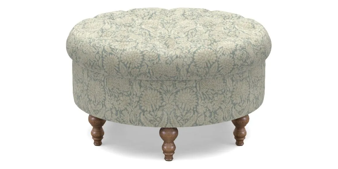 • Burford Bespoke Round Footstools in V&A Threads of India - Varanasi Wilderness : Sapphire