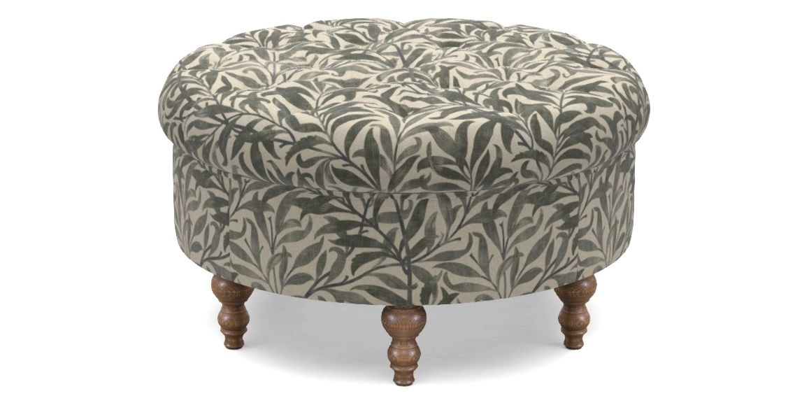 • Burford Bespoke Round Footstools in V&A Drawn From Nature - Willow Bough Large : Dark Green