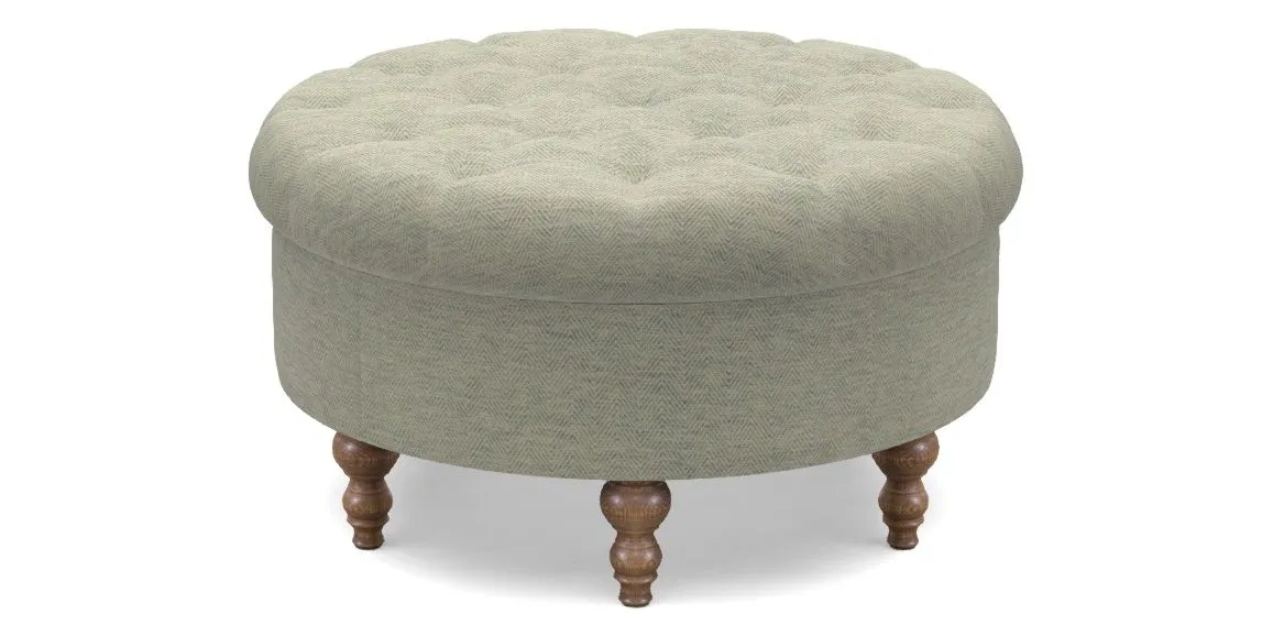 Burford Bespoke Round Footstools in Whernside Herringbone : Delphinium