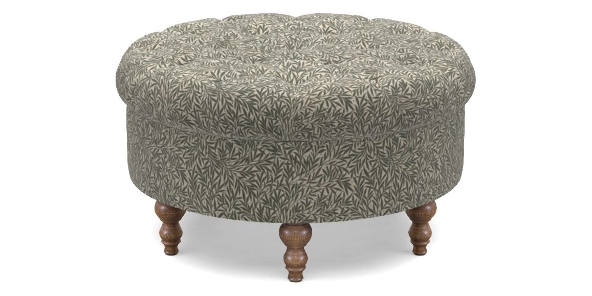 Burford Bespoke Round Footstools in V&A Drawn From Nature - Willow : Dark Green