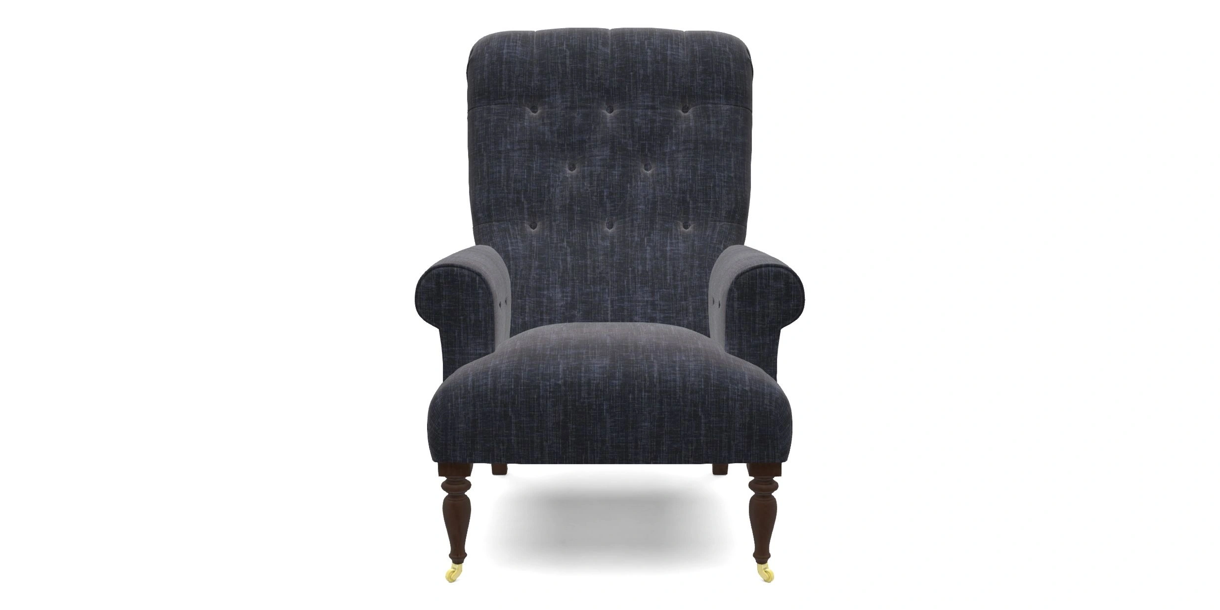 Chelsham has a timeless, tailored look, with scroll arms and deep buttoning across the back and inner arms. Inspired by a Victorian armchair in the home of a friend of our founder, it combines neat proportions with a deep, seat and high, perfectly judged back — ideal for resting your head.